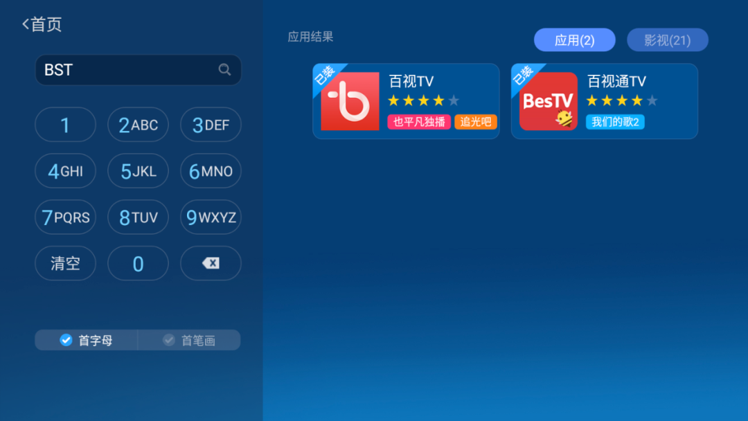 安装好之后打开沙发管家应用市场,搜索【BS】百视TV,下载安装即可。