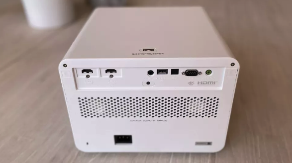 明基X3000采用微型投影仪的设计,这种占地面积小的投影仪非常适合桌面使用,投影仪投射比为1.15至1.5,这意味着在3.2米的距离上,我们可以通过调整变焦来投射出98英寸至133英寸的屏幕尺寸。 X3000的后部有两个 HDMI 输入,均支持 UHD,一个支持 HDMI 的 ARC 音频输出到更大的音响系统。可以从光纤音频输出中获取音频,或者从迷你插孔立体声模拟输出中获取音频,但可靠性较低且没有环绕声。