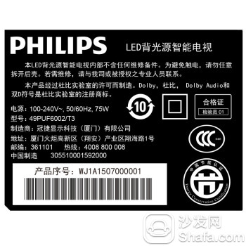 飞利浦 49 PUF 6002/T3电视分类标签