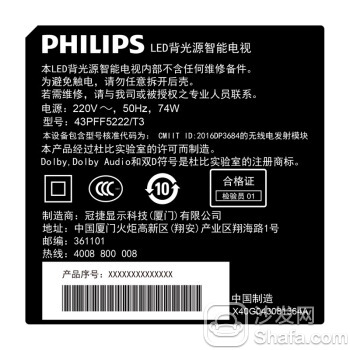 飞利浦 43PFF5222/T3电视分类标签