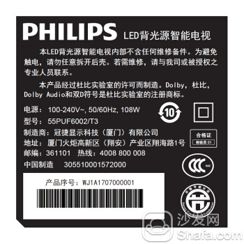 飞利浦 55PUF6112/T3电视分类标签